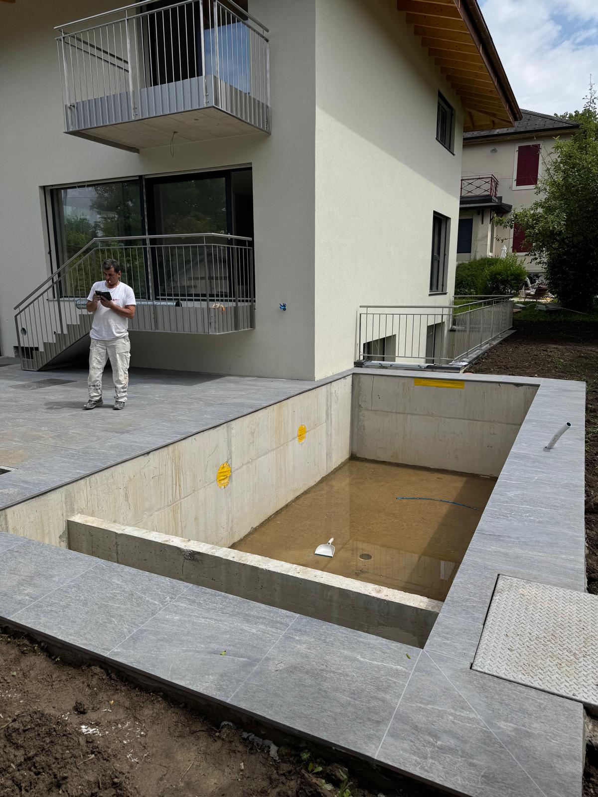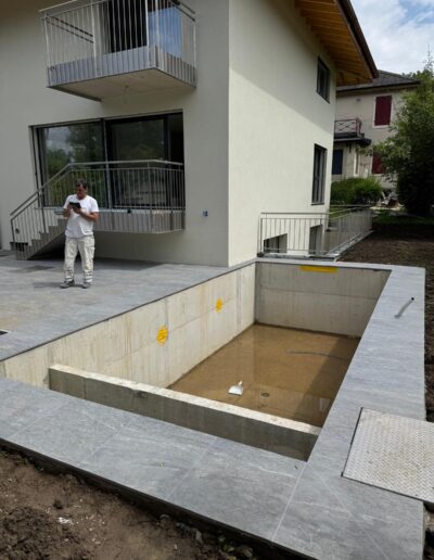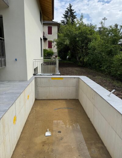 À Vernier, notre équipe a mené à bien un projet complet intégrant fondations, gros œuvre, maçonnerie et aménagement extérieur.