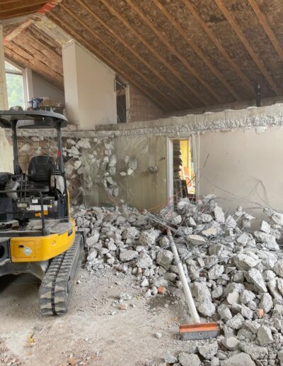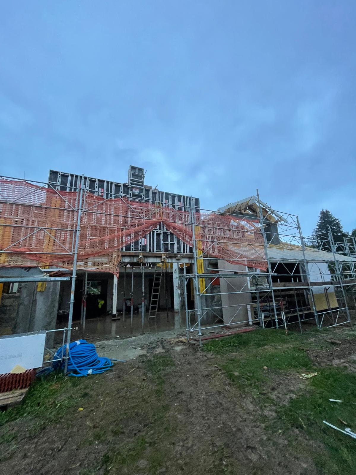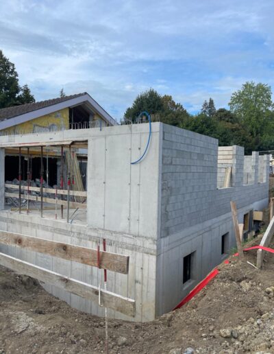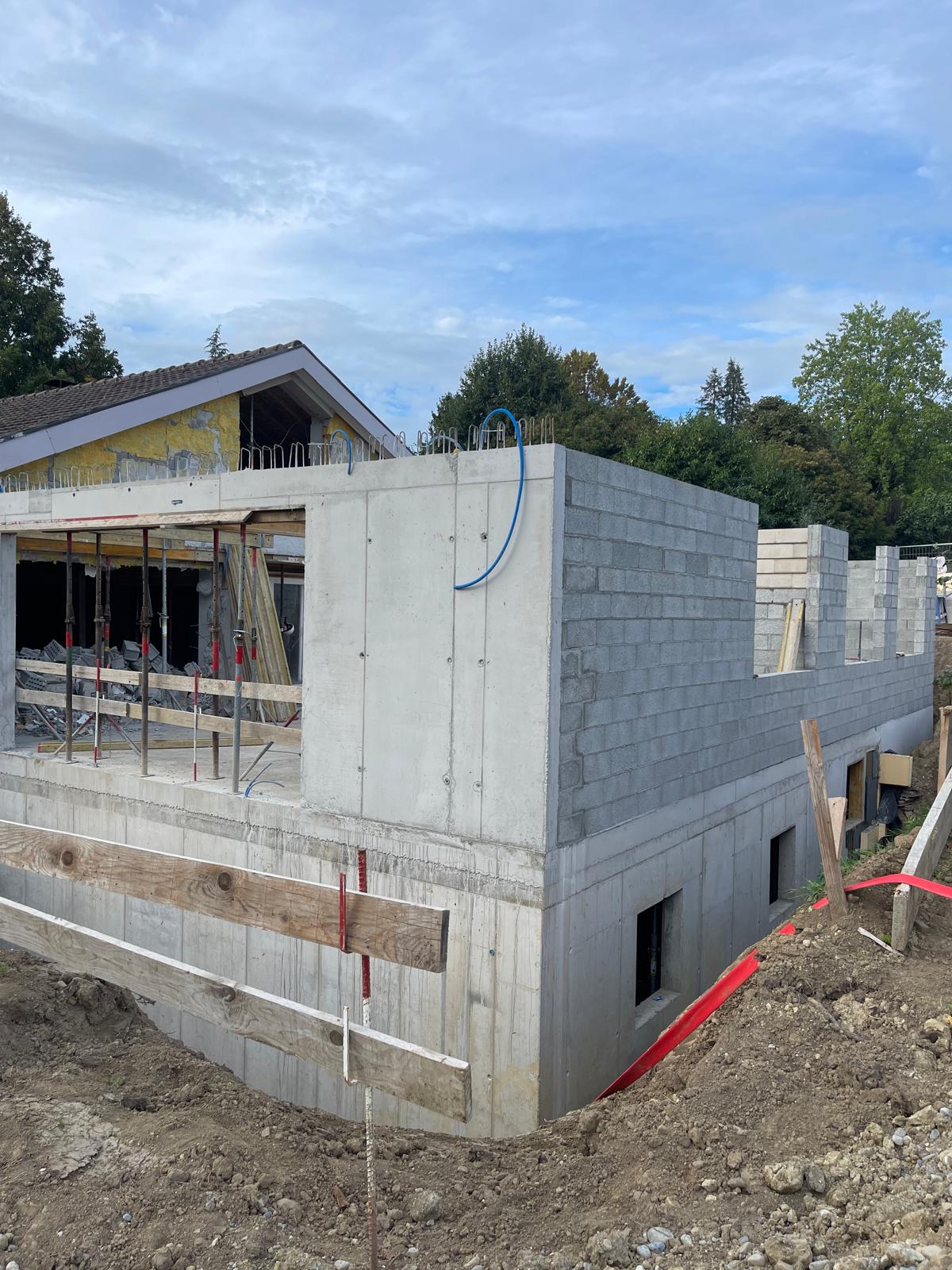 À Lonay et Jouxtens, notre équipe a réalisé un chantier complet associant démolition, gros œuvre et maçonnerie afin de transformer totalement la bâtisse existante.