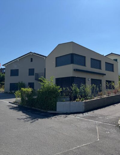 À Yverdon, notre équipe a réalisé un projet immobilier d’envergure intégrant gros œuvre, maçonnerie, aménagement extérieur et finitions modernes.